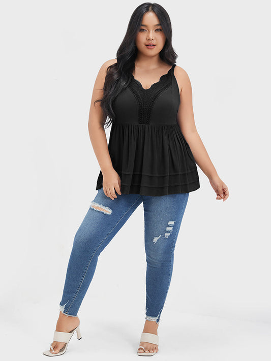 Solid Gathered Shirred Crochet Lace Backless Tank Top