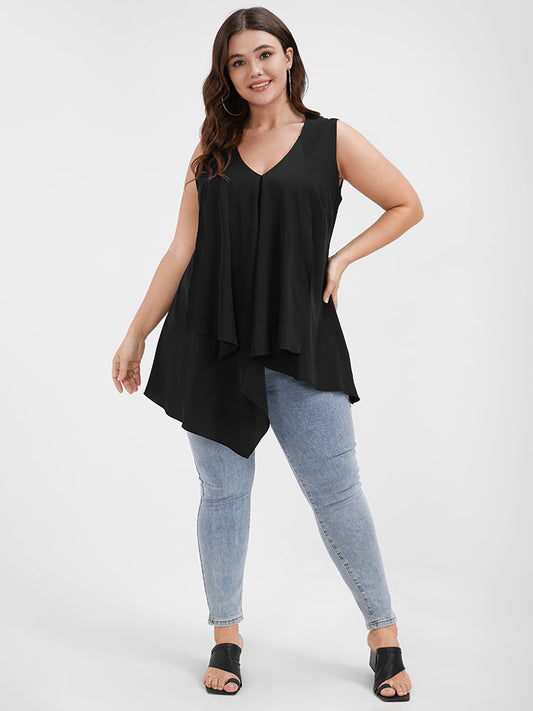 Solid Flutter Asymmetrical Hem Tank Top