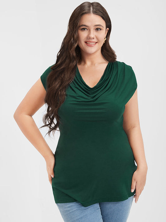 Solid Dolman Sleeve Gathered Modal T-shirt