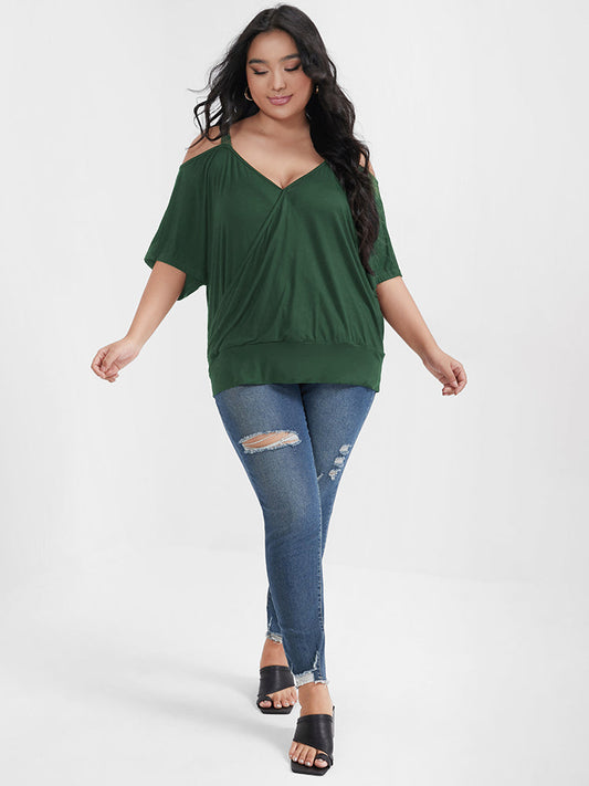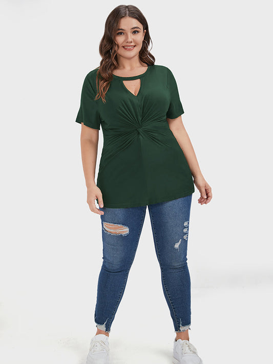 Solid Gathered Twist Front Cold Shoulder T-shirt