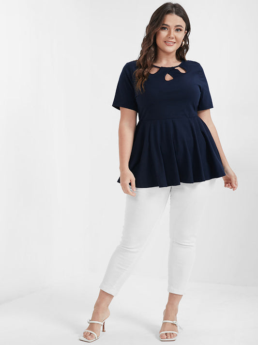 Solid Ruffled Cut Out Modal Round Neck T-shirt