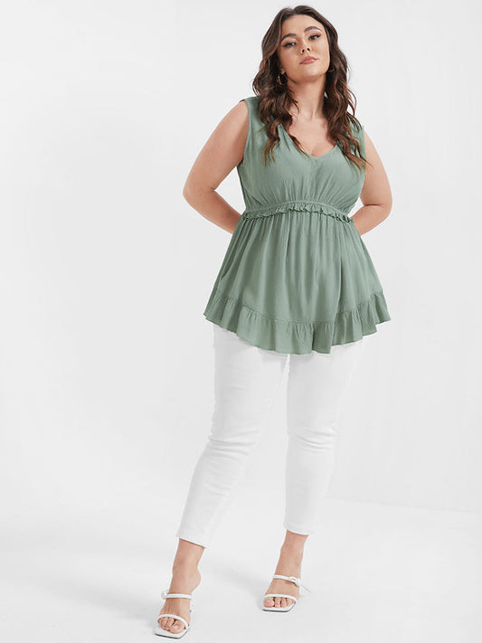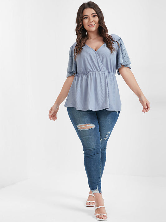 Plain Broderie Anglaise Ruffles Wrap T-shirt