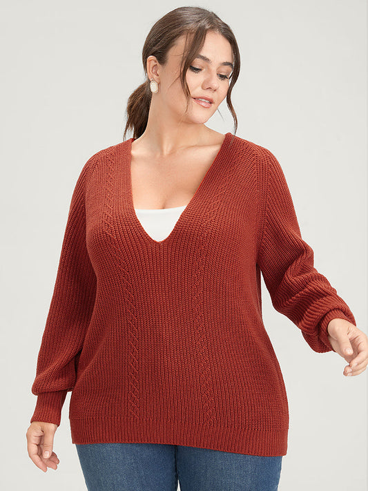 Solid Pointelle Knit Round Neck Cable Knit Top