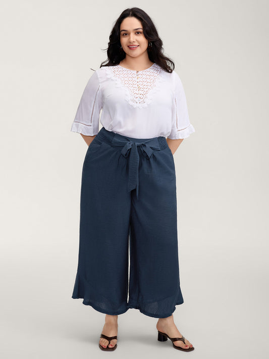 Waist-Tie Knotted Ruffled Wide-Leg Pants