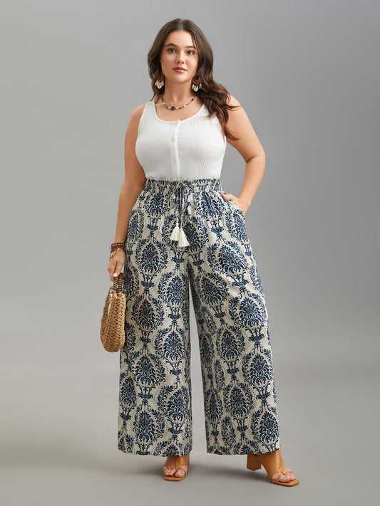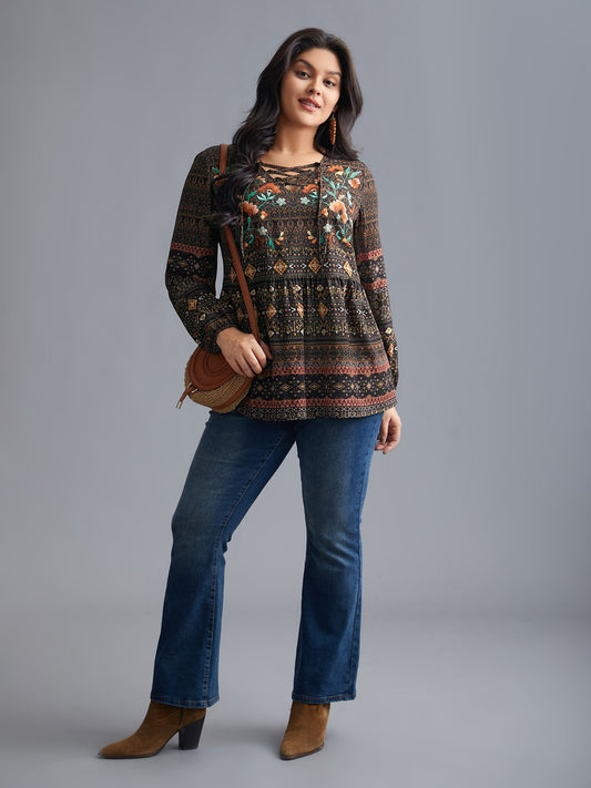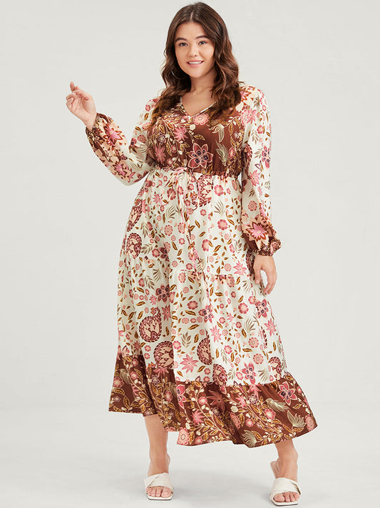 Floral Lantern Sleeve Pocket Split Tie Flutter Midi Dress