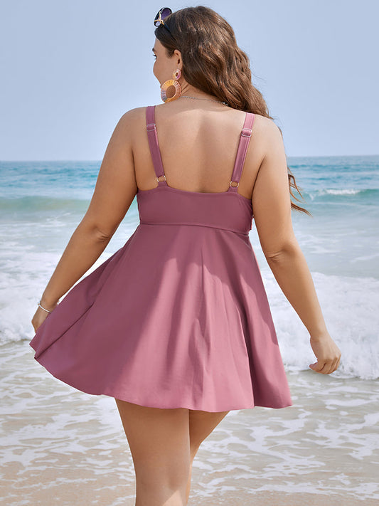 Twist Front Adjustable Straps Sculpt Waist Swim Dress