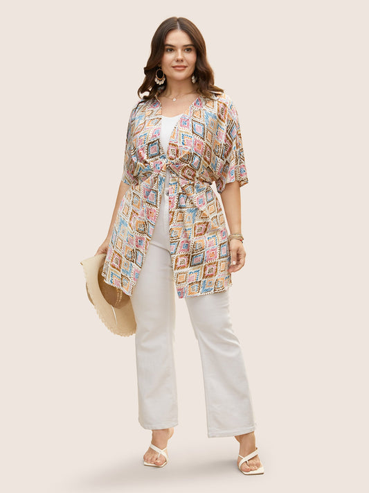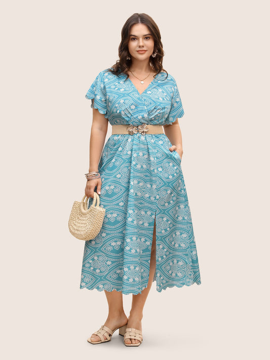 Geometric Bandana Print Cold Shoulder Midi Dress