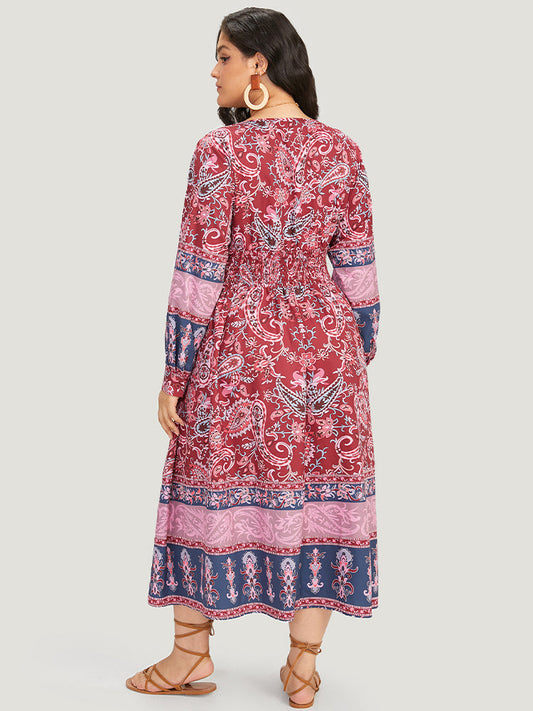 Bandana Print Notched Layered Hem Elastic Cuffs Dress