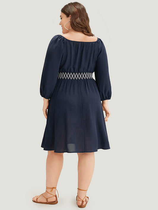 Bandana Shirred Square Neck Lantern Sleeve Dress