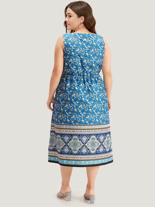 Bandana & Paisley Print Shirred Pocket Midi Dress