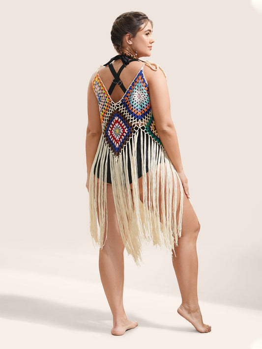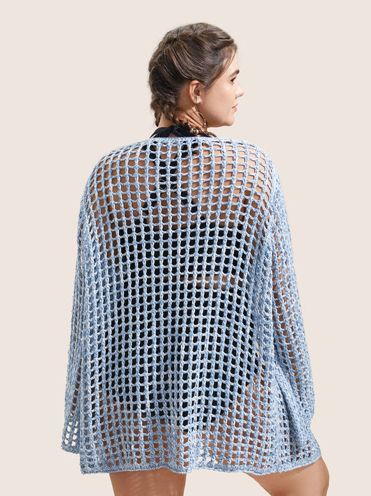 Ombre Heather Hollow Out Bell Sleeve Swim Cover Up