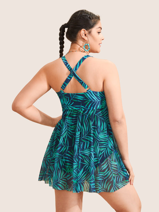Plain Crossover Flutter Trim One Piece Swimsuit
