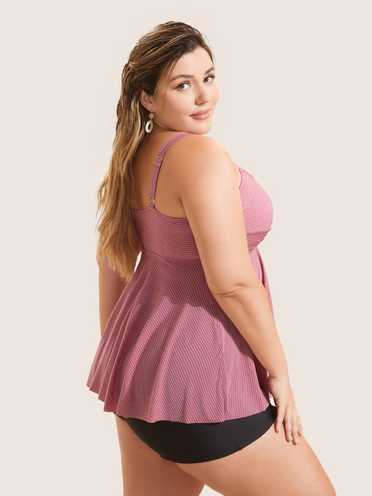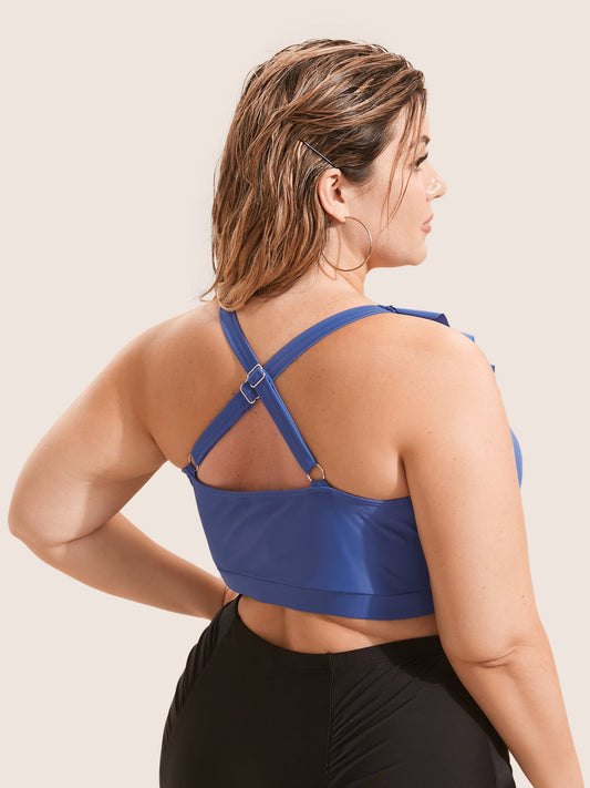 Overlap Collar Natural Flowers Gathered Swim Dress