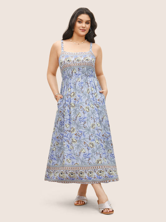 Floral Elastic Waist Adjustable Straps Cami Dress