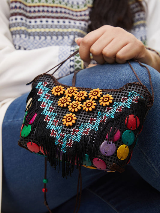 Bandana Tassels Floral Decor Shoulder Tote Bag