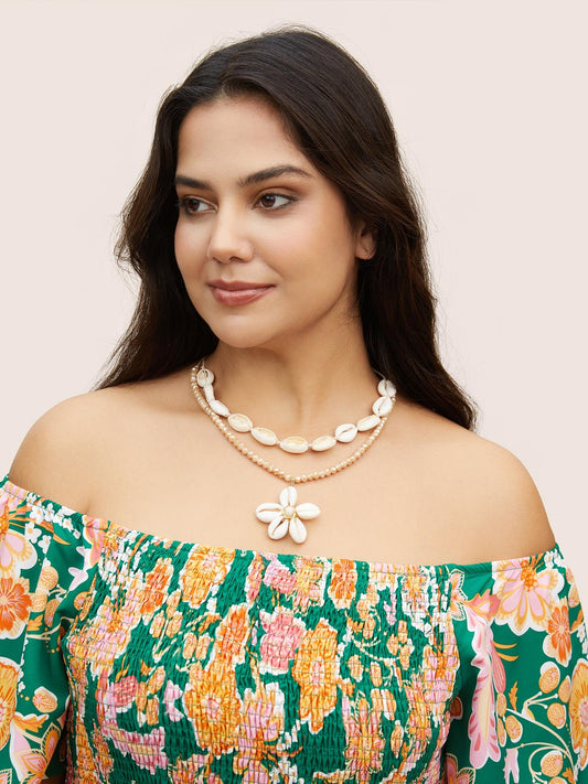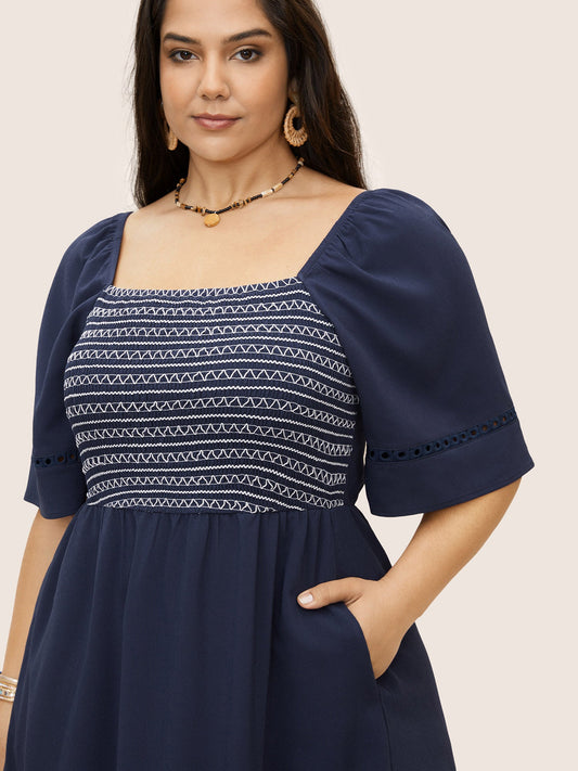 Square Neck Woven Ribbon Gathered Shirred Dress