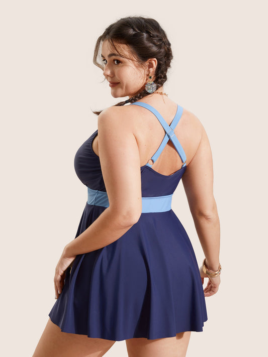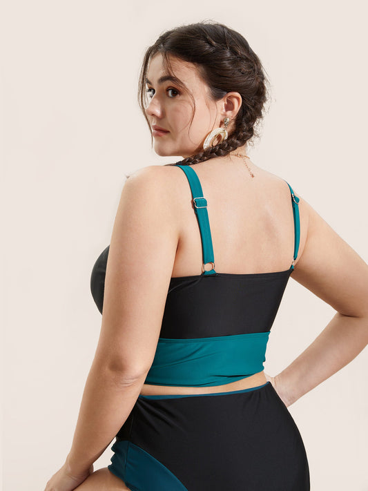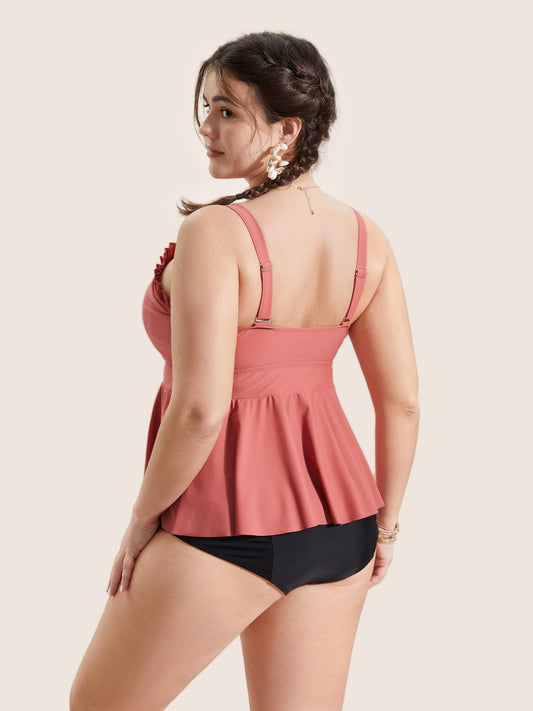 Solid Tie Knot Ruched Frill Trim Swim Top