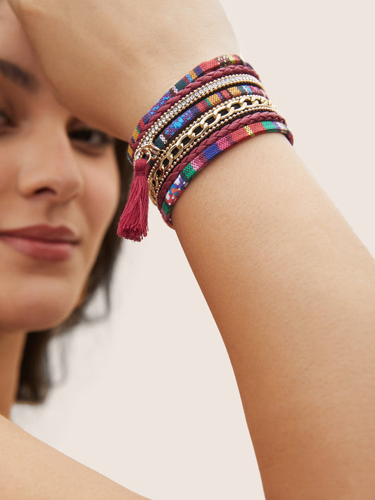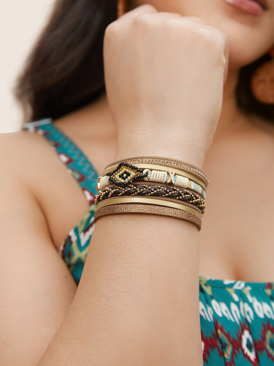 Multi Layer Beads Wide Buckle Wristband Bracelet