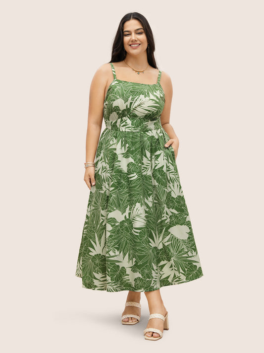 Tropical Print Adjustable Straps Maxi Dress