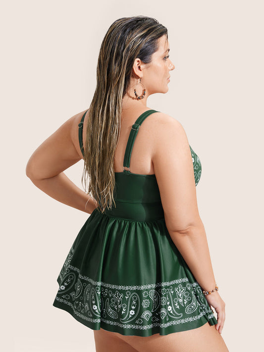 Paisley Print Ruched Adjustable Straps Swim Dress