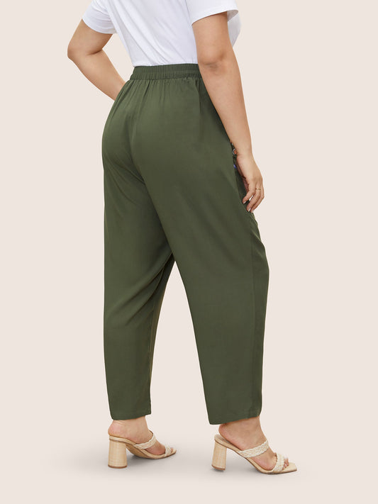 Floral Embroidered Elastic Waist Slanted Pocket Pants
