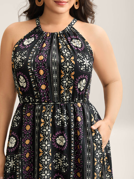 Rayon Tropical Boho Print Stretchy Maxi Dress