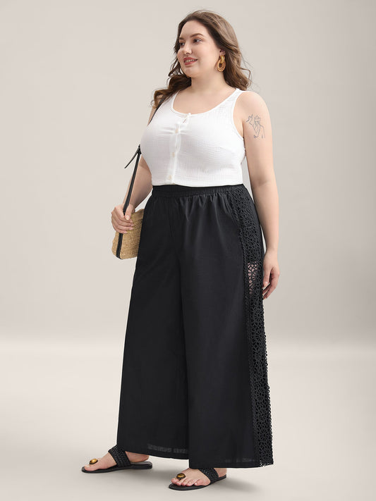 Cotton Crochet Stretchy Waist Pockets Midi Dress