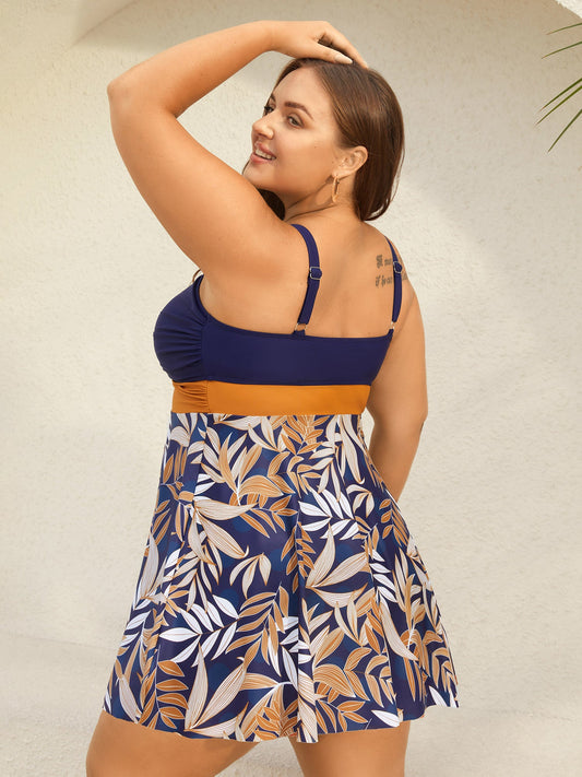 Tropical Flower Color Block Swim Dress