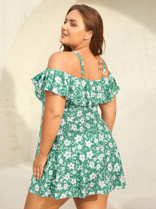 Ditsy Floral Print Ruffled Swim Dress