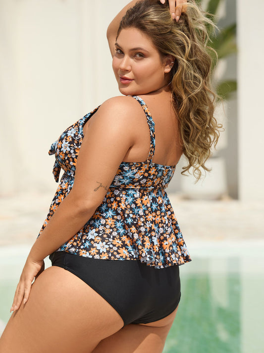 Floral Print Ruched Bow Tie One-Piece Swimsuit
