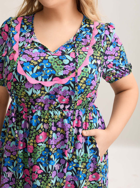 Rayon Floral Print Stretchy Waist Maxi Dress