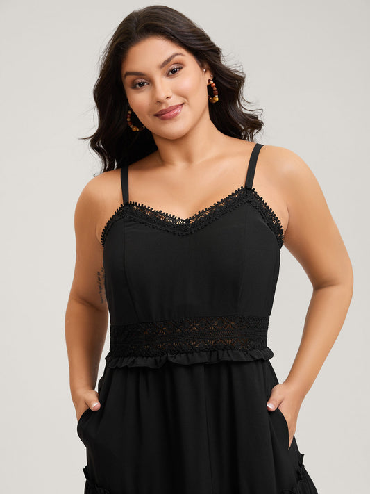 Lace Trim Tiered Cami Maxi Dress
