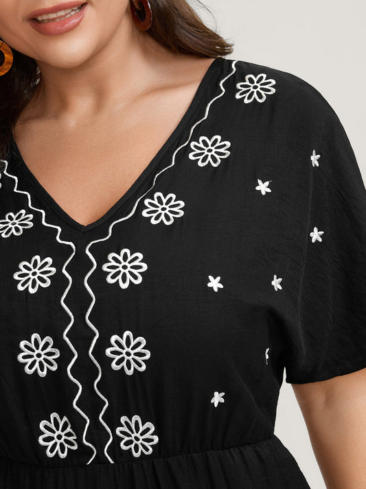 Floral Embroidery V-Neck Jumpsuit