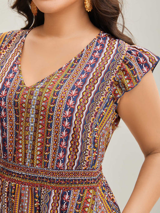 Colorful Striped Pleated Waist Pockets Jumpsuit