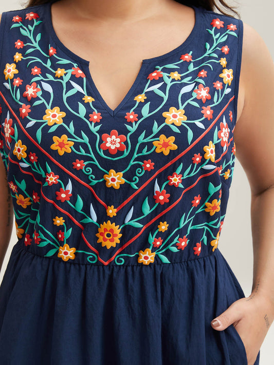 Imitation Embroidery Woven Sleeveless Midi Dress