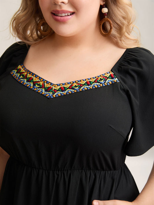 Paisley Print Stretchy Waist Pockets Midi Dress