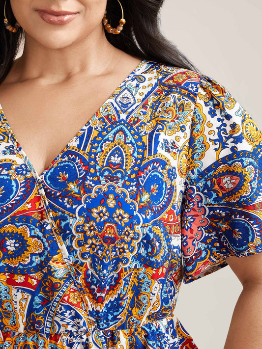 Floral Jacquard Pattern Cut-Out Swim Cover-Up