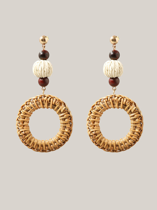 Straw Hoops Beaded Drop Earrings
