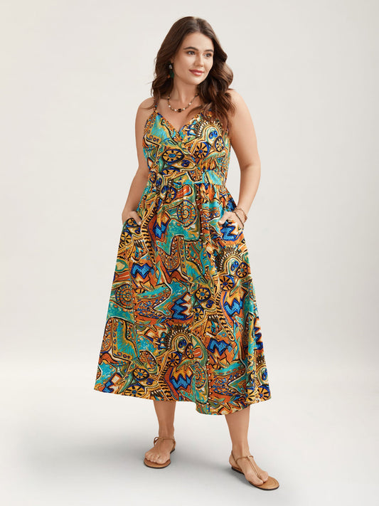 Boho Print Stretchy Waist Pockets Maxi Dress