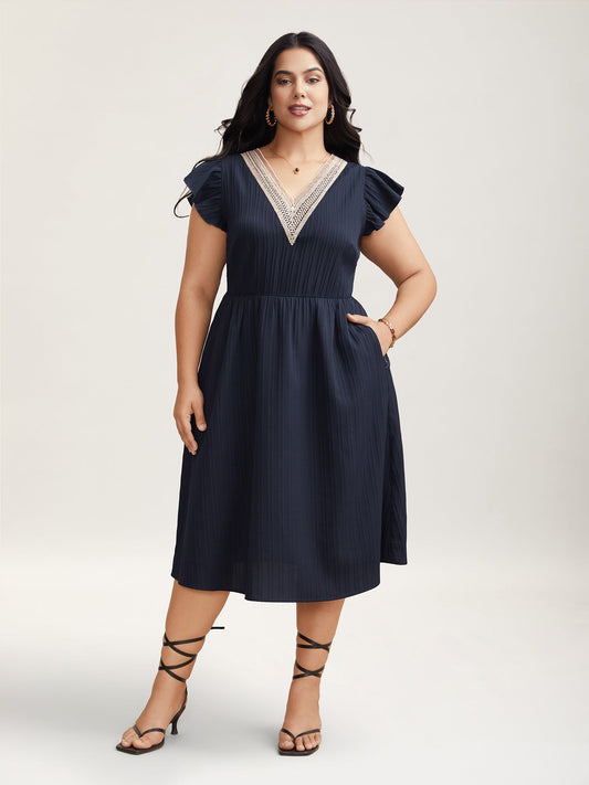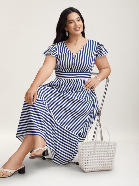 Nautical Stripes Stretchy Waist Tiered Midi Dress