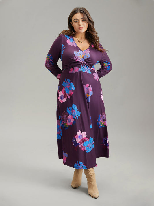 Boho Print Elastic Waist Elastic Cuffs Dress