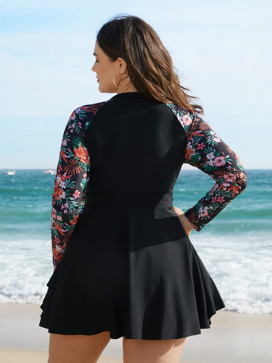 Floral Button Cuffed Sleeve Asymmetrical Hem Blouse