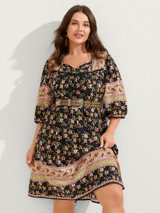 Paisley Print Notched Neckline Midi Dress