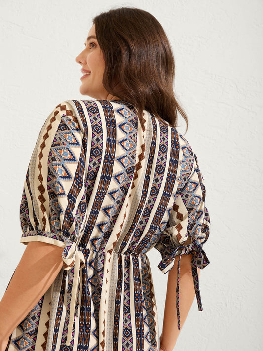 Geometric Stripes Button Detail Midi Dress