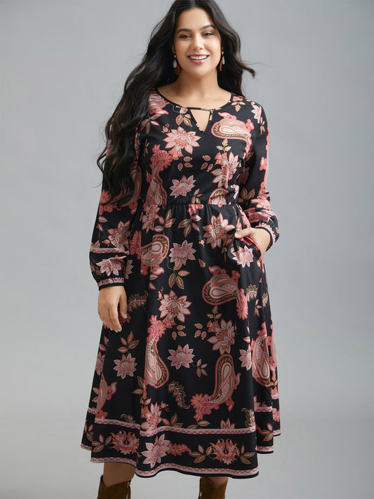 Laser Cut Overlap Collar Waist-Cinched Swim Dress