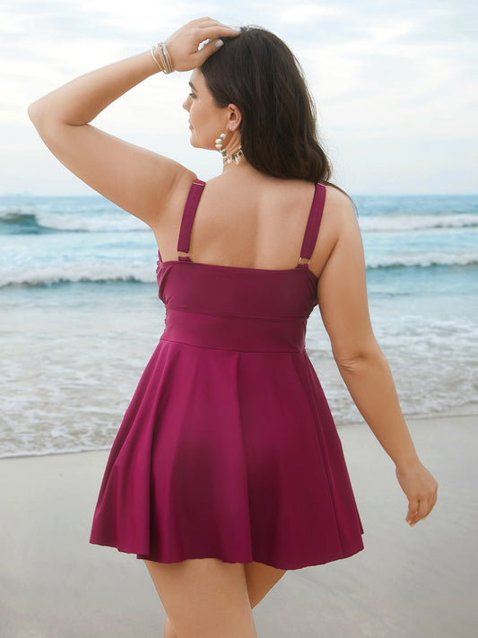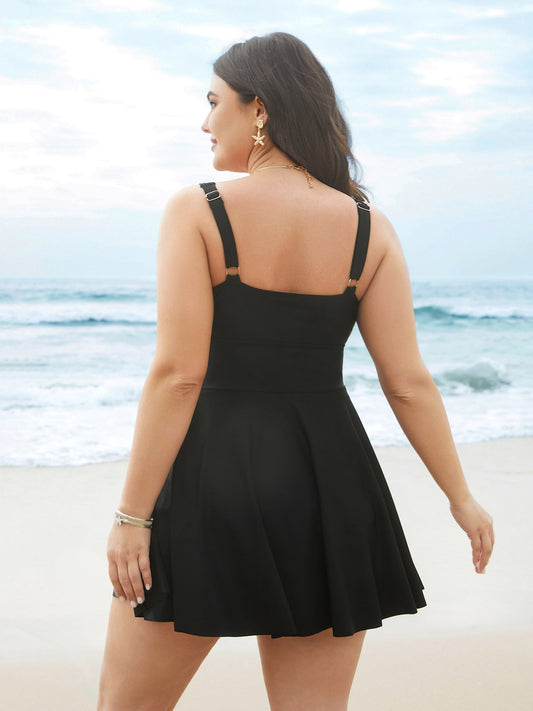 Lace Wrap-Neck Adjustable Straps Swim Dress