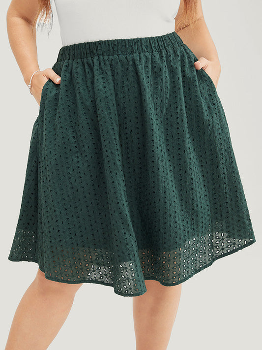 Plain Broderie Anglaise Pocket Ruffle Hem Skirt