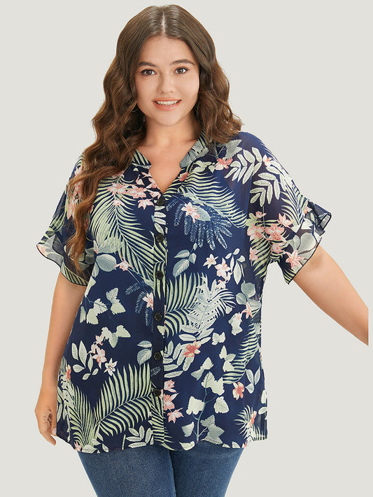 Tropical Print Batwing Sleeve Pocket Belt Romper