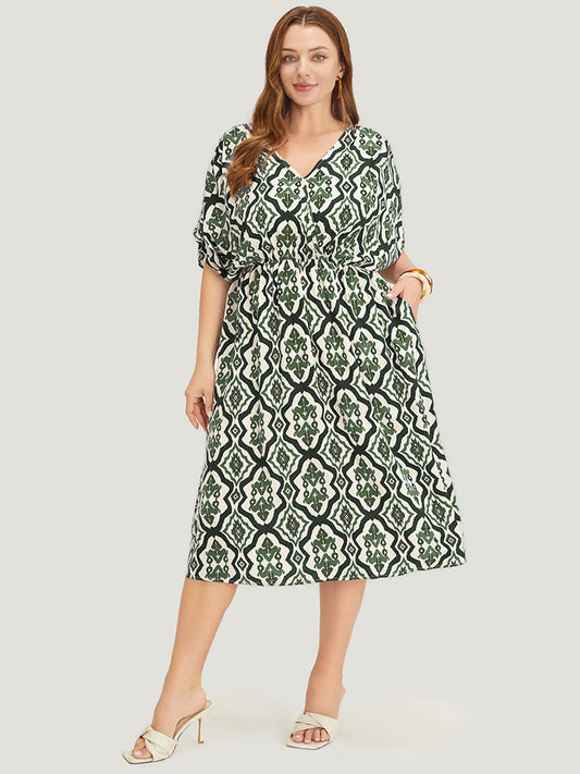 Bandana Printed Ruffle Sleeve Pocket Button Detail Dress