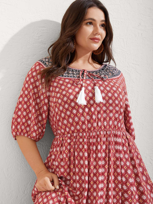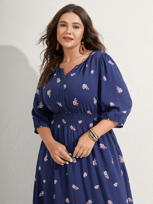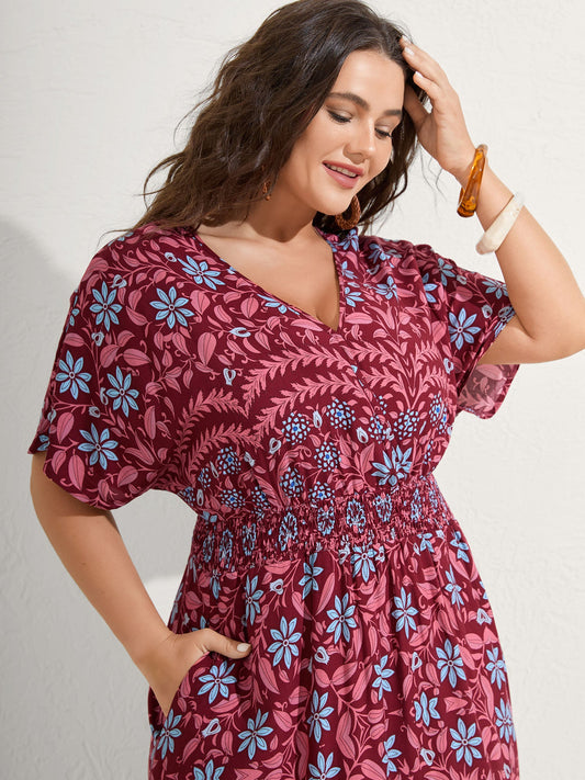 Boho Floral Ruffled Off-Shoulder Midi Dress